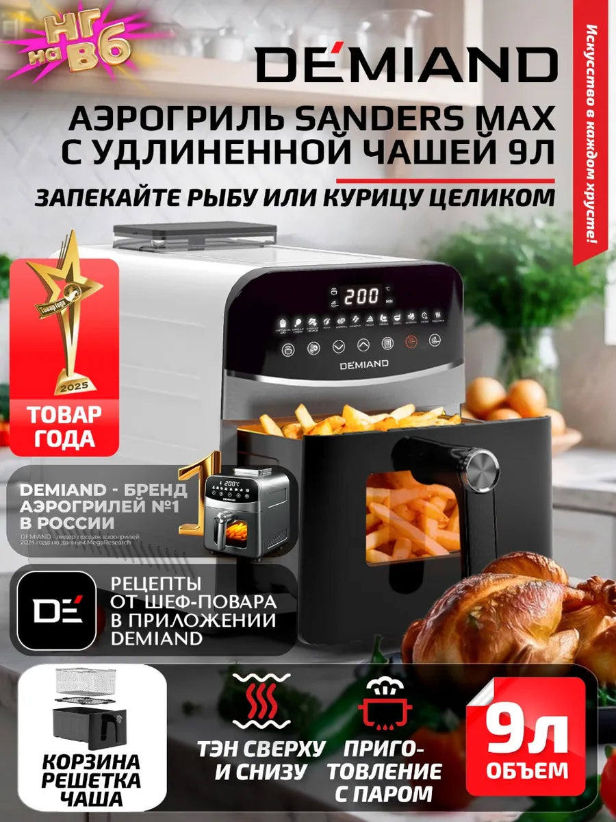 DEMIAND SANDERS MAX havo qovurg'ichi, 9 litr, ikki ta isitish elementi, bug' funksiyasi bilan